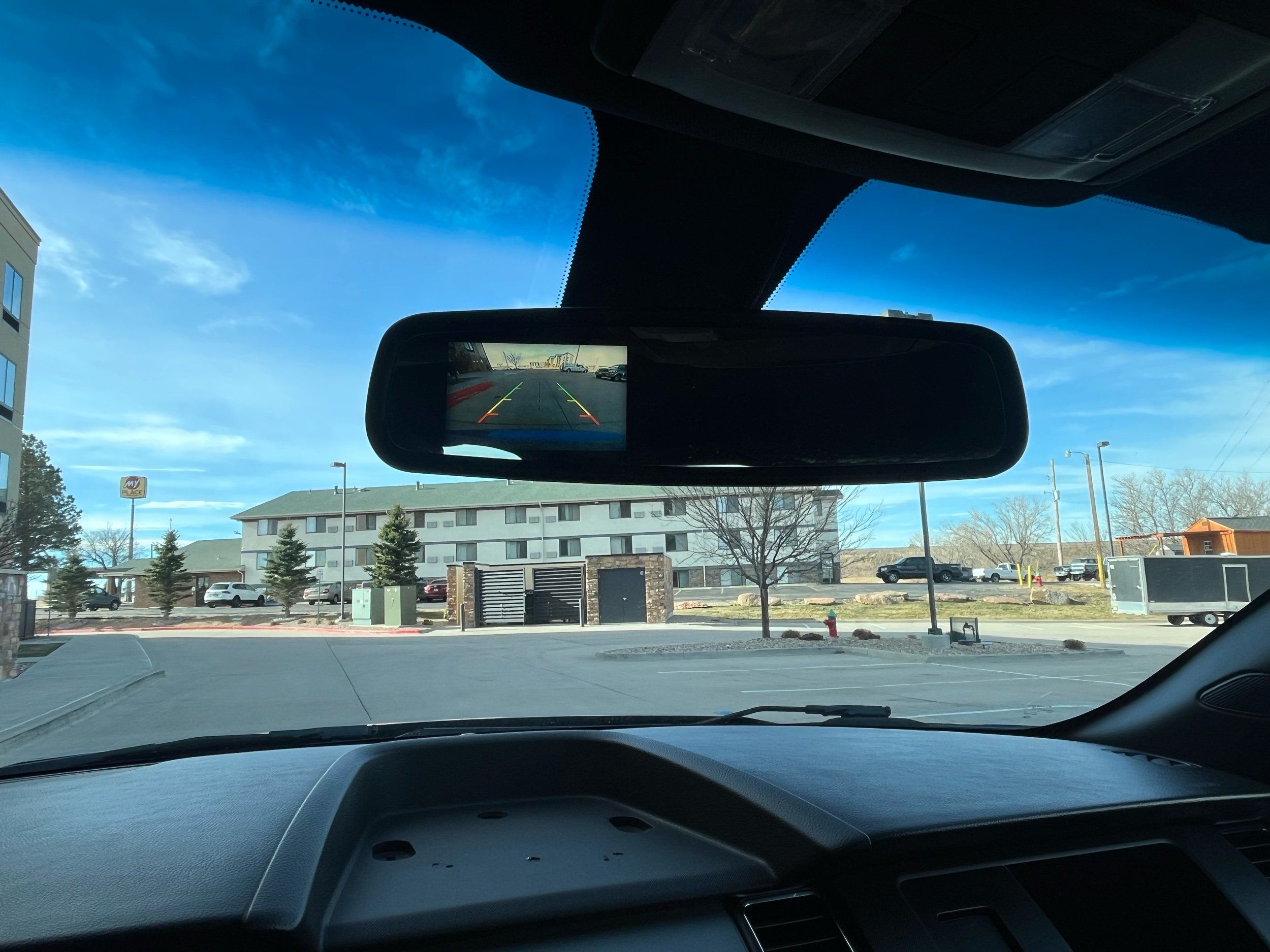 Rearview mirror: Auto-dimming rear view mirror. Number of first-row screens: 2 total number of 1st row displays. Rear camera: Rear mounted camera.