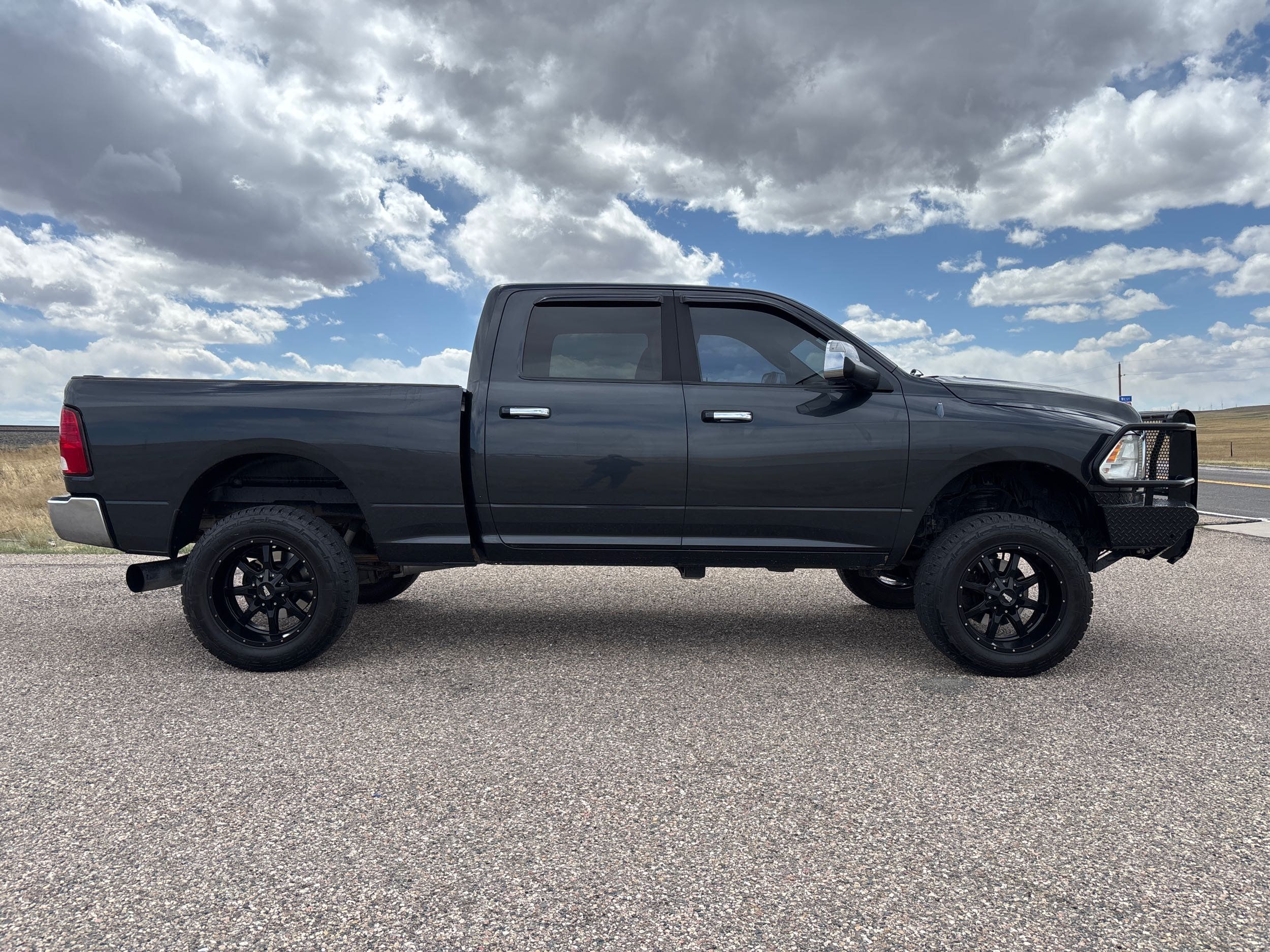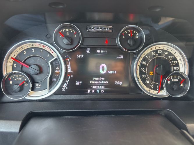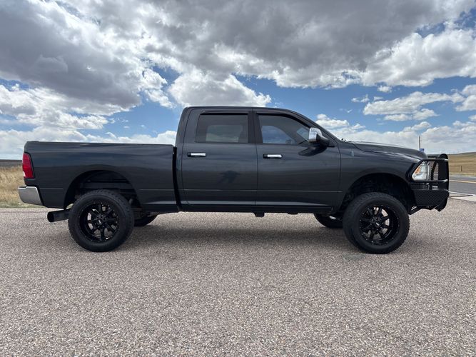 Experience the power and luxury of the 2013 Ram Pickup 2500 Big Horn, a robust Crew Cab designed for those who demand more from their truck. Cloaked in an elegant Mineral Gray Metallic Clear Coat, this pickup combines rugged capability with refined comfort. Its formidable Cummins 6.7L Diesel Turbo I6 engine delivers an impressive 350 horsepower and 660 lb-ft of torque, all harnessed through a smooth-shifting 6-speed automatic transmission and reliable 4WD drivetrain. Inside, enjoy premium cloth bucket seats with a host of conveniences like heated front seats, remote start, and UConnect's advanced infotainment system featuring Bluetooth connectivity.