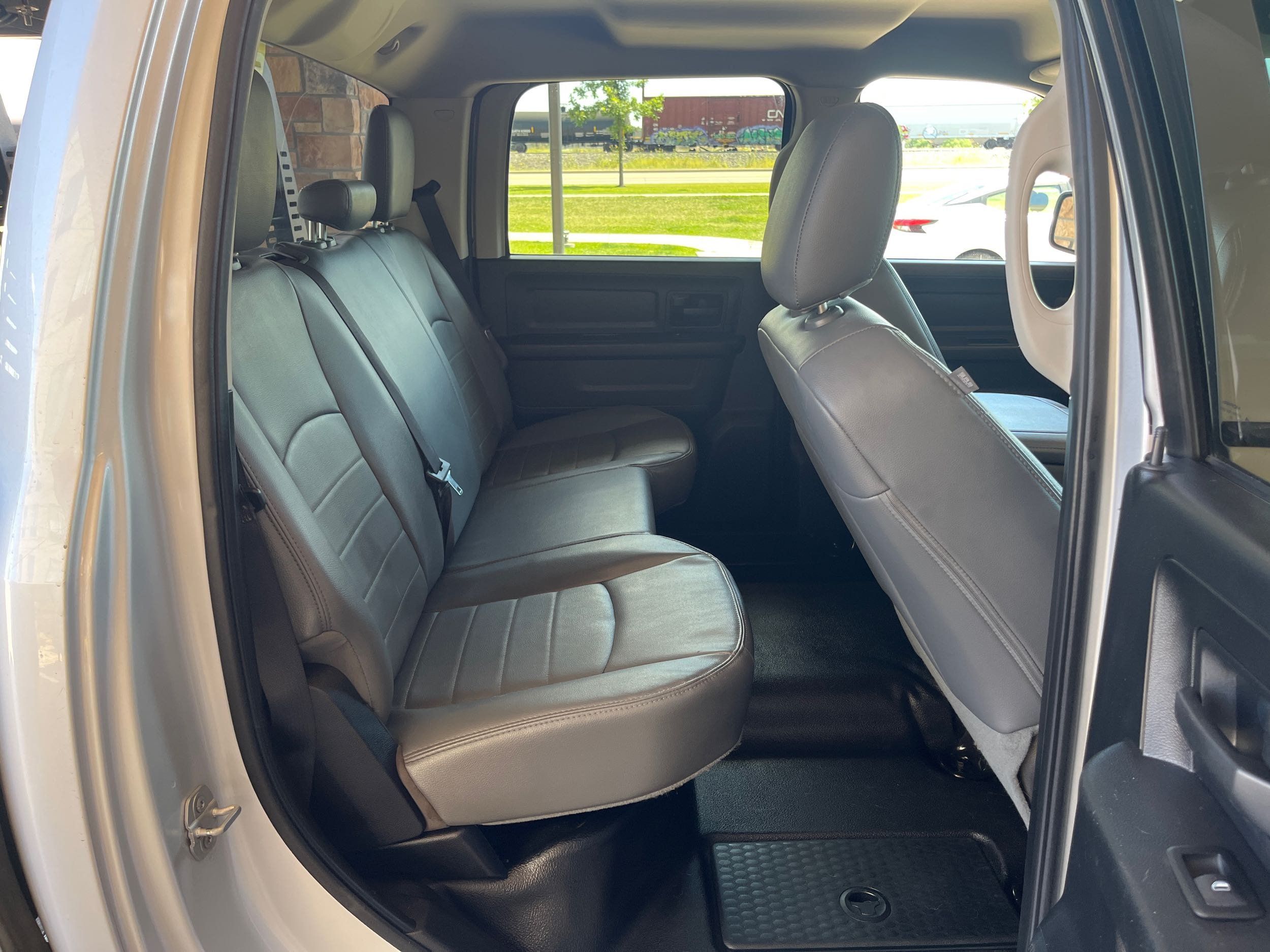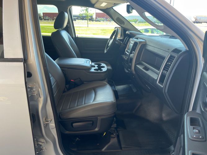 Inside, you'll find comfort meets durability with premium leather seating that enhances every journey. The advanced four-wheel-drive system ensures you're ready to tackle any terrain with confidence and ease. Whether you're hauling heavy loads or cruising through city streets, this pickup delivers exceptional performance without compromise. Don't miss your chance to own this versatile powerhouse—visit us today to test drive the Ram Pickup 1500 Tradesman and elevate your driving experience!